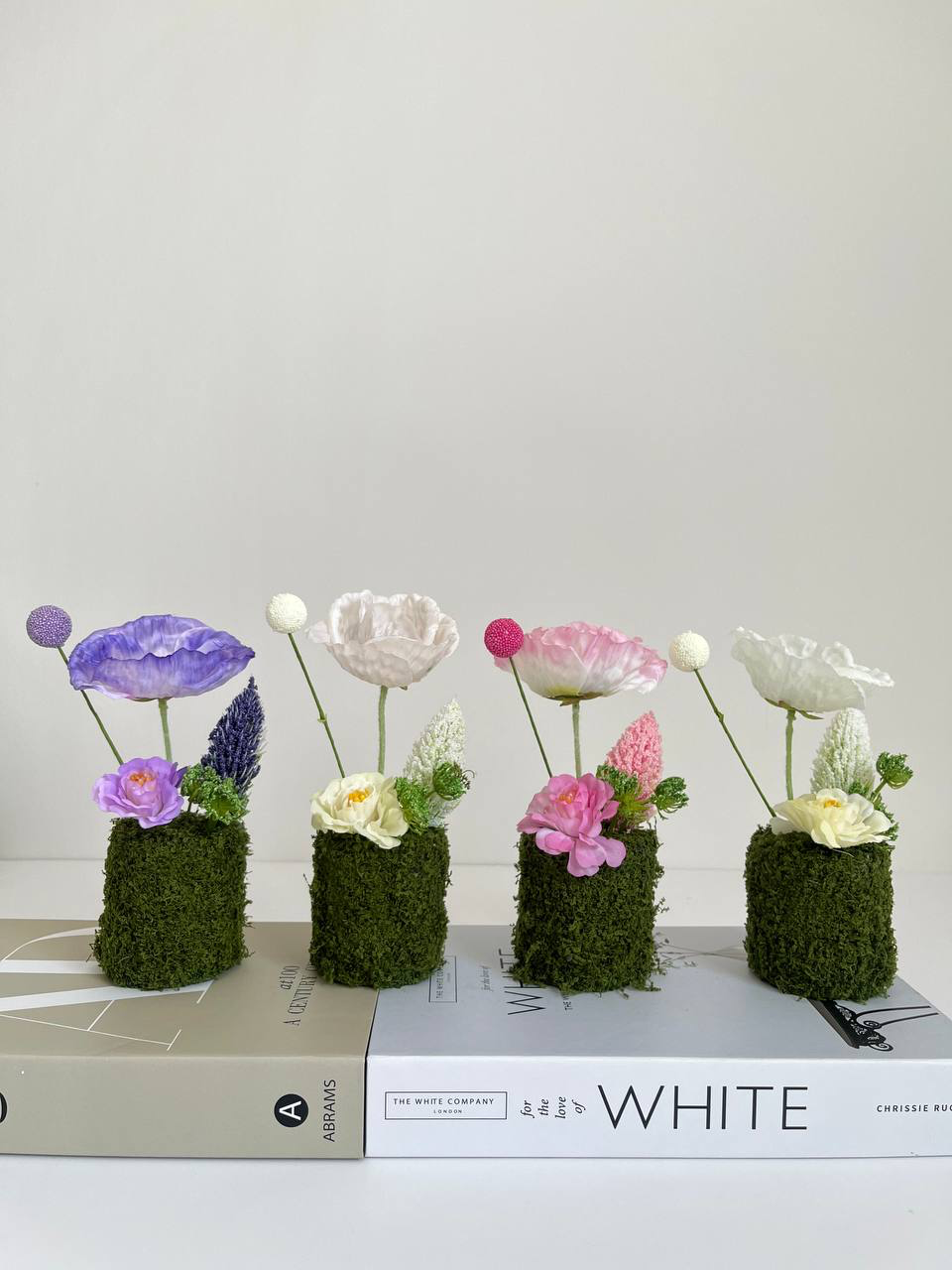 تنسيق مصمم بعناية من ورد صناعي عالي الجودة، مثبت على قاعدة عشبية تمنحها مظهرًا واقعيًا ومنعشًا. تعتبر الخيار الأمثل لتزيين طاولات الخدمة، أو المكاتب، أو أي ركن ترغب في إضفاء لمسة جمالية عليه. ولأننا نهتم بذوقك الخاص، نوفر لك إمكانية اختيار لون الورد ليتناسب تمامًا مع ديكورك.