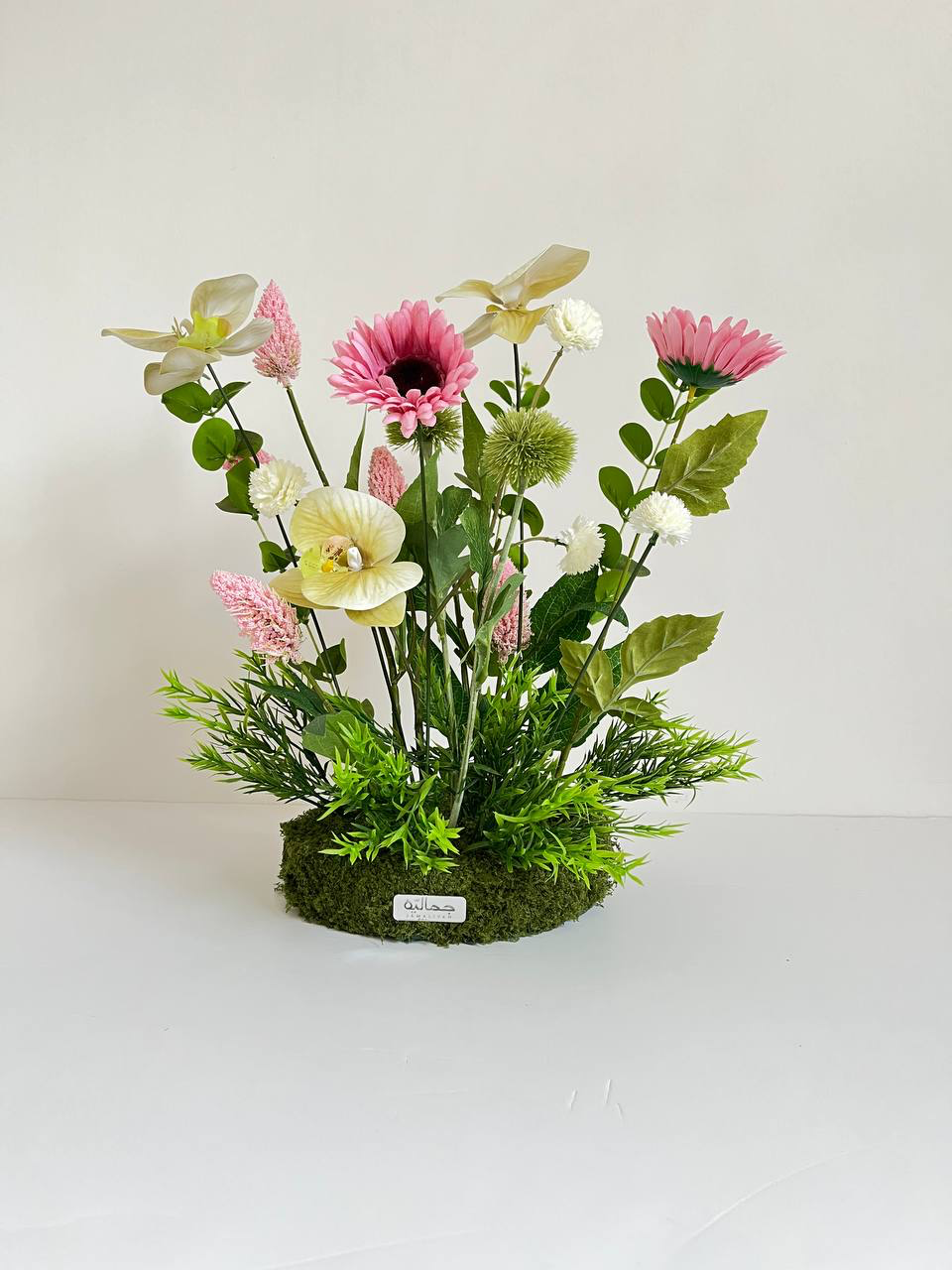 تنسيق ورد صناعي فاخر على قاعدة عشبية دائرية، بقطر 20 سم يضيف لمسة ترحيب دافئة لكل زاوية. مع خيار إضافة تغريسة أكريلك ( مقوسة - مستطيلة ) قابلة للتخصيص باسم البيبي أو عبارة ترحيبية، يجيك بألوان ورد حسب ذوقك. خيار مثالي لهدية استقبال، جلسة تصوير، أو تزيين ركن الضيافة بأسلوب راقٍ يخلّد أول لحظة.